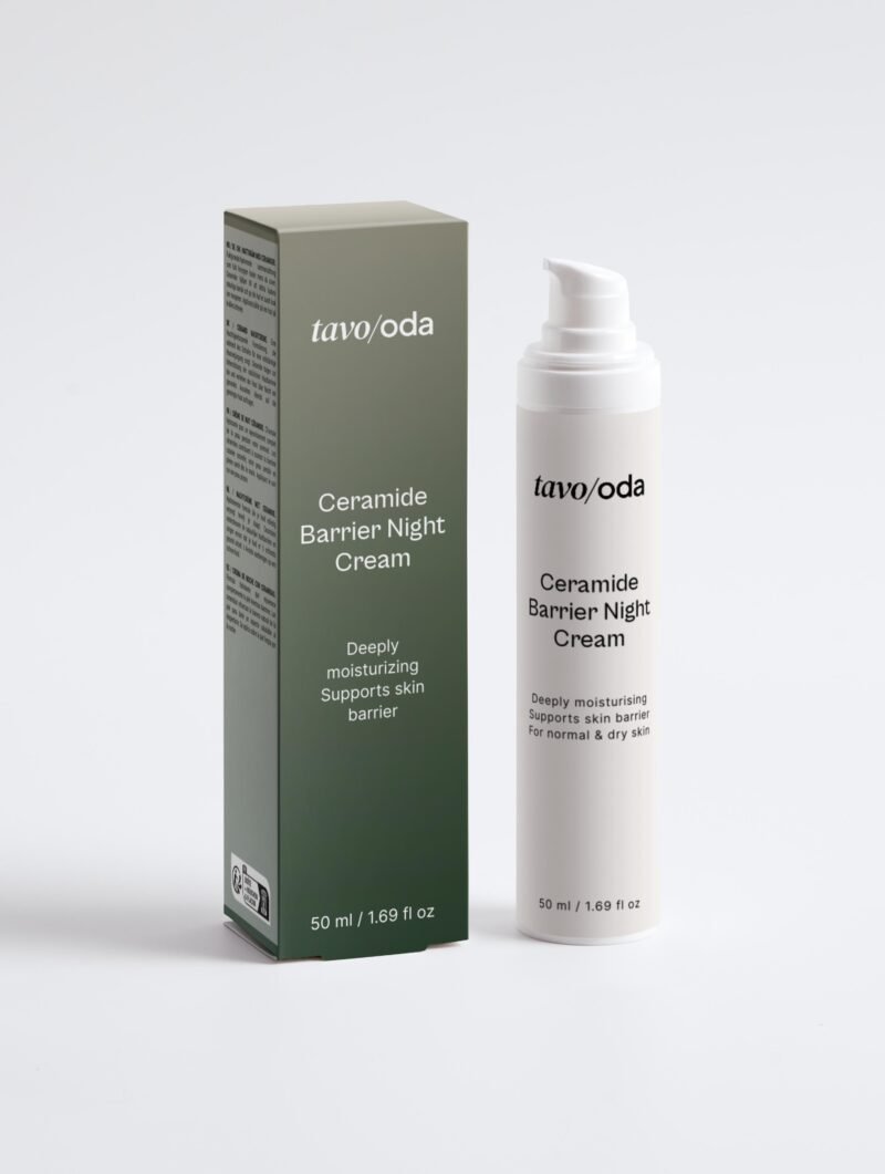 Kaip greitai matomi rezultatai? Ceramidai ir hialurono rūgštis pradeda veikti jau pirmą naktį — ryte oda jausis drėgnesnė ir minkštesnė. Barjero atstatymas ir matomi pokyčiai paprastai pastebimi po 2–3 savaičių reguliaraus naudojimo.